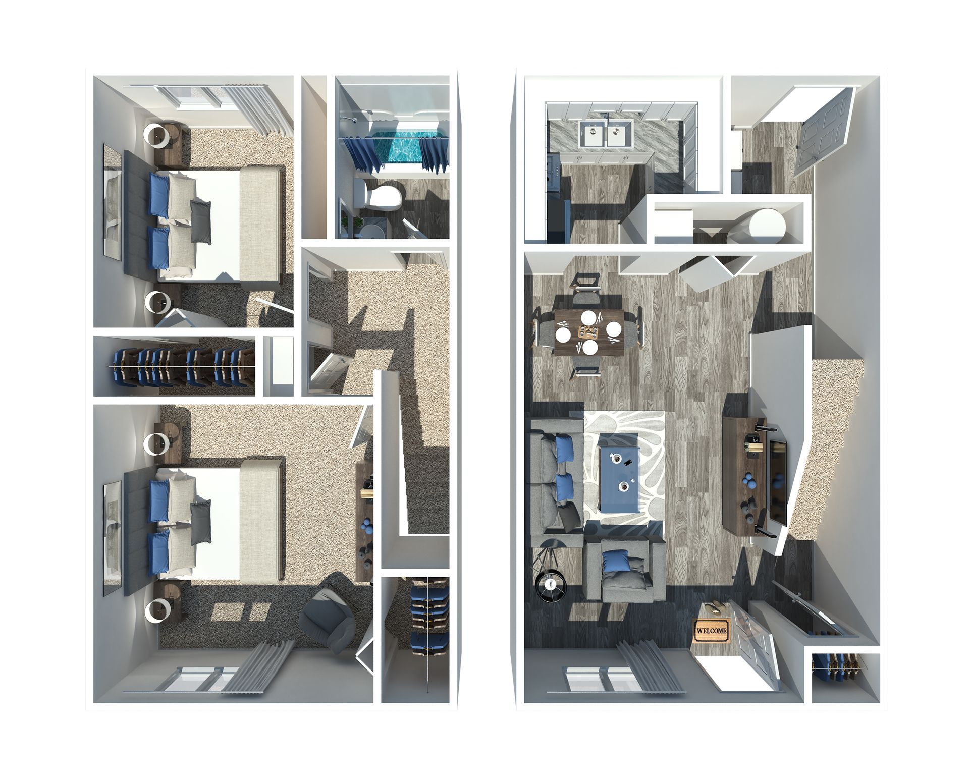- Beds | 1-2 bedrooms, 2-4 townhomes